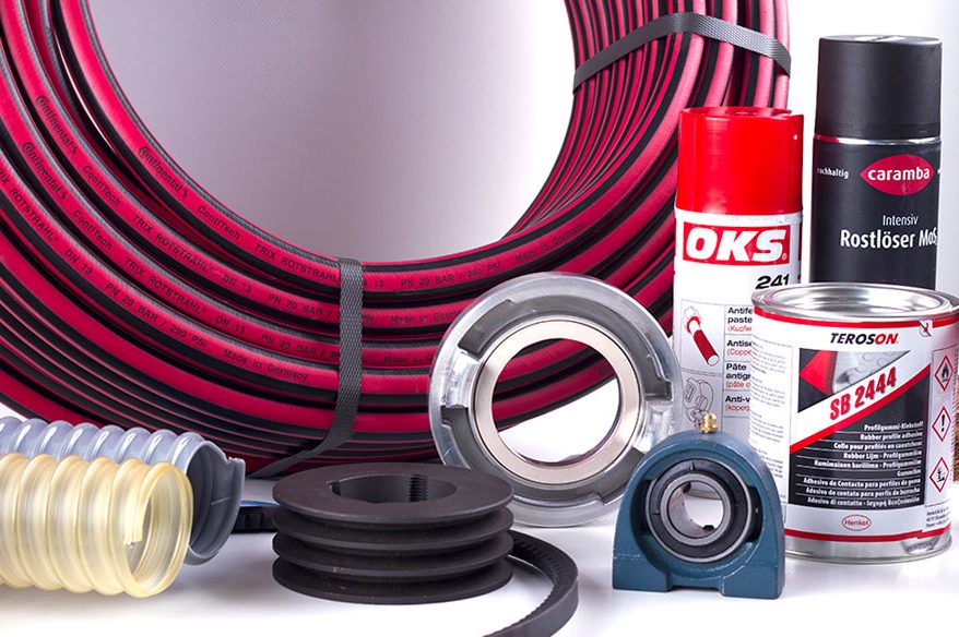 Gummischläuche, Kunststoffschläuche Absaug- und Gebläseschläuche Konfektionierte Schlauchleitungen Armaturen, Edelstahlringwellschläuche Kompensatoren PTFE-Wellschläuche, Druckluftschläuche Chemieschläuche, Flachschläuche Hochabriebfeste Förderschläuche für die KiesindustrieArmaturen und Fittings