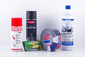 Klebebänder z.B. Tesa Wartungssprays wie Reiniger, Rostlöser, Fette von OKS, Caramba, CRC etcHebezeuge und Ladungssicherung